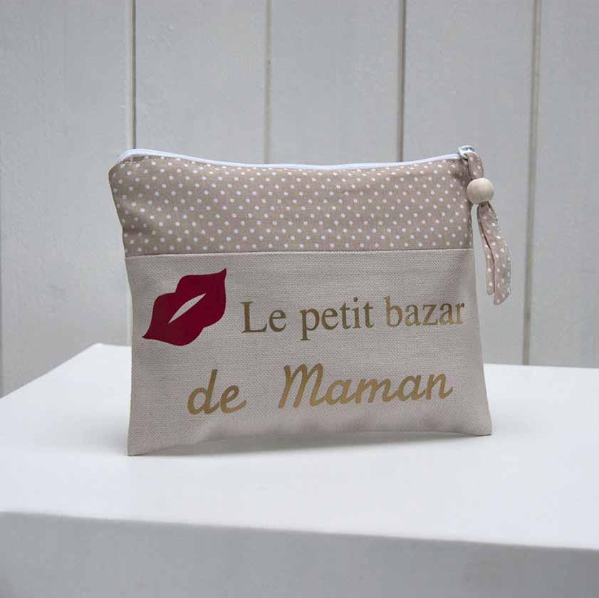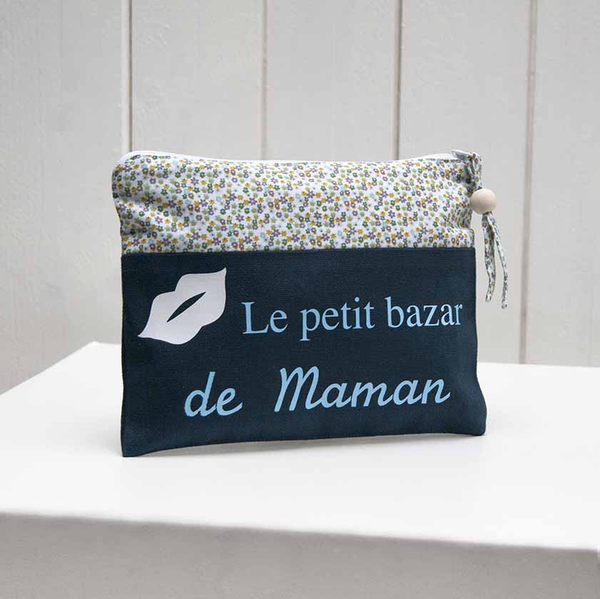 La trousse à maquillage « Le petit bazar de maman » servira bien sûr pour le maquillage, mais tout autre petit bazar. Comme le nécessaire à vernis à ongles, les papiers de voiture, mais elle peut également service de trousse à crayons.