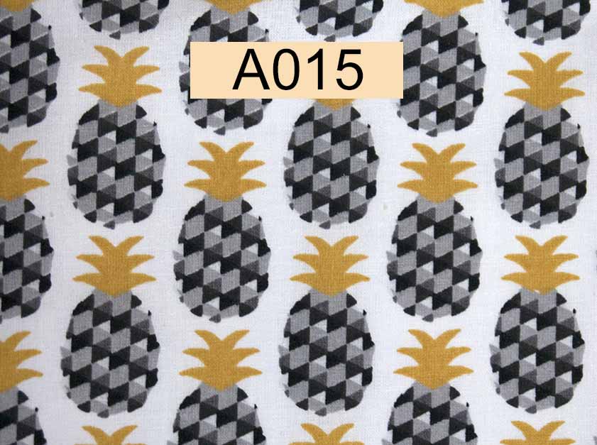 tissu coton blanc cassé ananas gris et feuilles moutarde