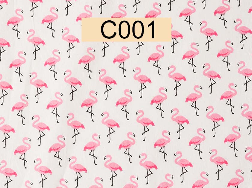 tissu coton blanc flamants roses