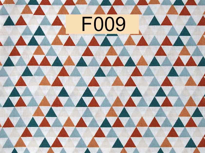 tissu coton multicolores triangles bleus et gris pois rouge